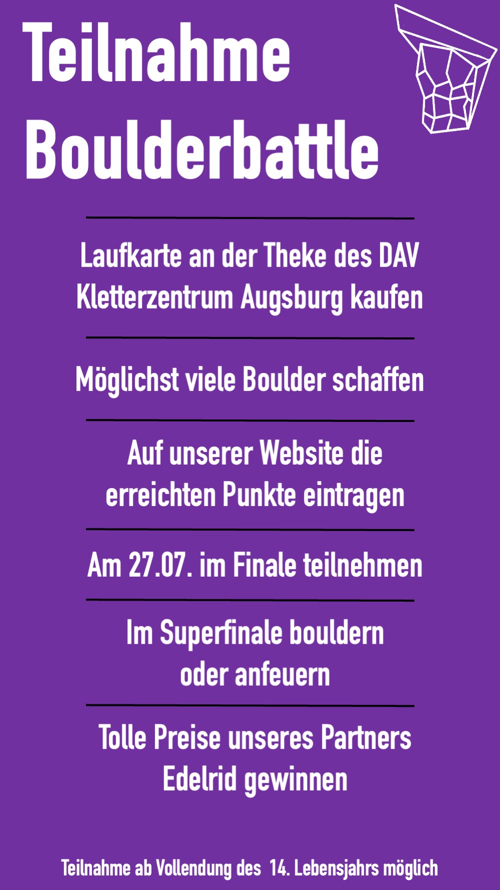 Am Sonntag, den 27.07. ist es soweit. Das Augsburger Boulderbattle Finale und Superfinale steht an!